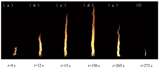 - Tang, F.; Hu, L.H.; Delichatsios, M.A.; Lu, K.H.; Zhu, W. Experimental Study on Flame Height and Temperature Profile of Buoyant Window Spill Plume from an Under-Ventilated Compartment Fire. Int. J. Heat Mass Transf. 2012, 55, 93–101. [Google Scholar] [CrossRef]