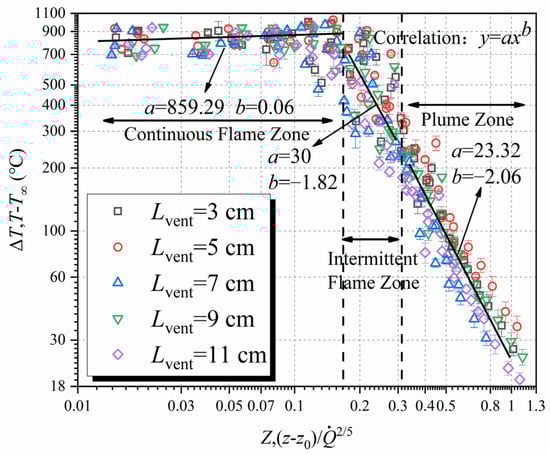 - Quintiere, J.G.; Grove, B.S. A Unified Analysis for Fire Plumes. Symp. (Int.) Combust. 1998, 27, 2757–2766. [Google Scholar] [CrossRef]