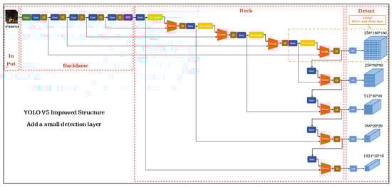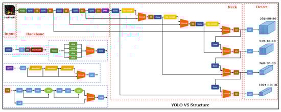 YOLOv5, as the latest network structure of the YOLO series, comprises four components: input, backbone, neck, and detect. Figure 1 presents its network framework.