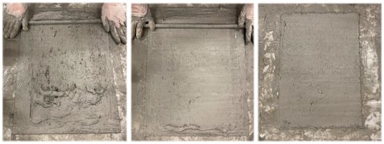 The matrix was smoothed with a metal rod to ensure an overall uniform thickness. After demolding the cement layer, it was applied to the cylinder using the rolling technique shown in Figure 2.