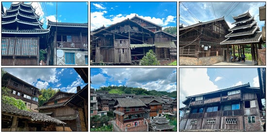 - Fu, J.; Zhou, J.; Deng, Y. Heritage Values of Ancient Vernacular Residences in Traditional Villages in Western Hunan, China: Spatial Patterns and Influencing Factors. Build. Environ. 2021, 188, 107473. [Google Scholar] [CrossRef]