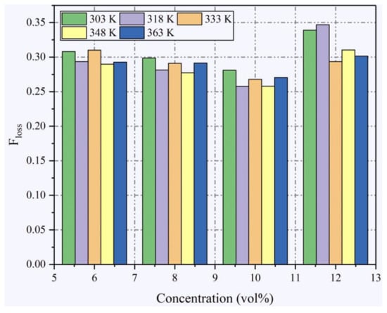At a constant concentration, the proportions of heat loss are approximately constant except for 12%. Moreover, the proportions of heat loss at 12% are notably larger.