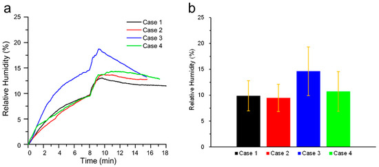 Humidity over time in the mock-up devices: (a) Data; (b) Standard deviation.