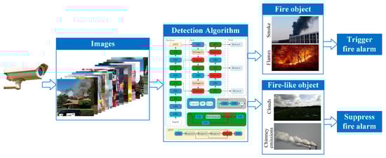 The primary goal of image-based fire detection systems is to enhance a fire alarm’s intelligence and sensitivity. Accurate fire detection involves rapid fire detection and resistance to fire-like objects. Most research focuses on enhancing fire detection accuracy, whereas fire-like objects are typically treated as background, and suppression strategies for nuisance alarms are seldom discussed.