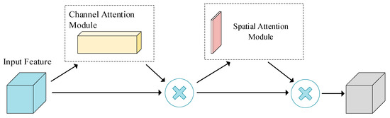 Attention mechanisms are widely used to improve the representation power of networks in various machine learning tasks. They help the network find correlations between the original data, highlighting important features, such as channel attention, pixel attention, multi-order attention, etc. [46]. A CBAM is a lightweight module emphasizing meaningful features along both channel and spatial principal dimensions. As shown in Figure 4, it consists of a channel attention module (CAM) and a spatial attention module (SAM).