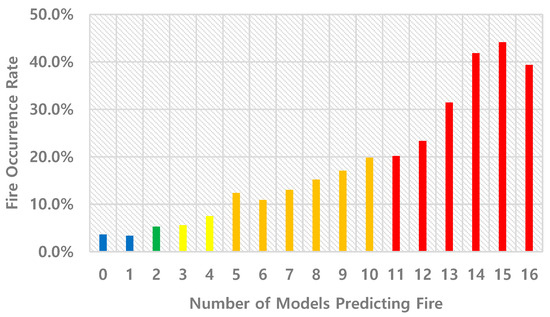 By consolidating the predictions, the ensemble model classified fire risk levels into five distinct grades. This grading system simplifies the interpretation of results and facilitates practical implementation in real-world fire prevention strategies. The effectiveness of the ensemble method is further evidenced by the distribution of actual fire occurrences across the risk grades: