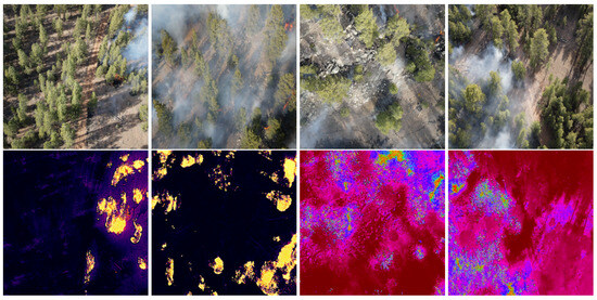 FLAME2 dataset example. (Top): RGB fire images. (Bottom): Their corresponding IR fire images.