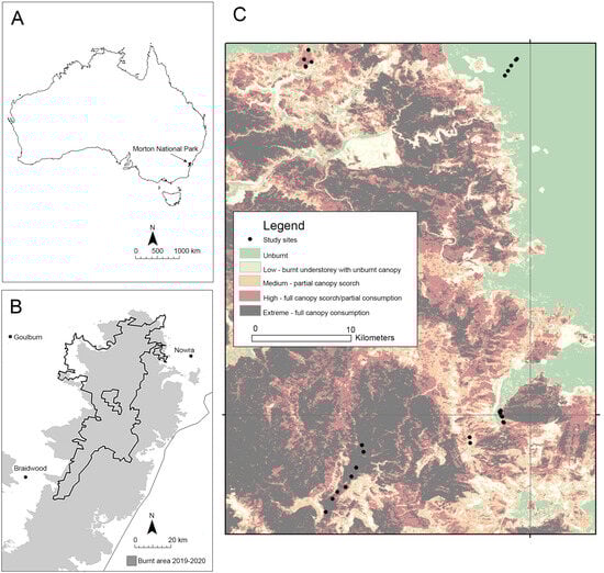 - Price, O.F.; Mikac, K.; Wilson, N.; Roberts, B.; Critescu, R.H.; Gallagher, R.; Mallee, J.; Donatiou, P.; Webb, J.; Keith, D.A.; et al. Short-term impacts of the 2019–20 fire season on biodiversity in eastern Australia. Austral Ecol. 2023, 48, 3–11. [Google Scholar] [CrossRef]