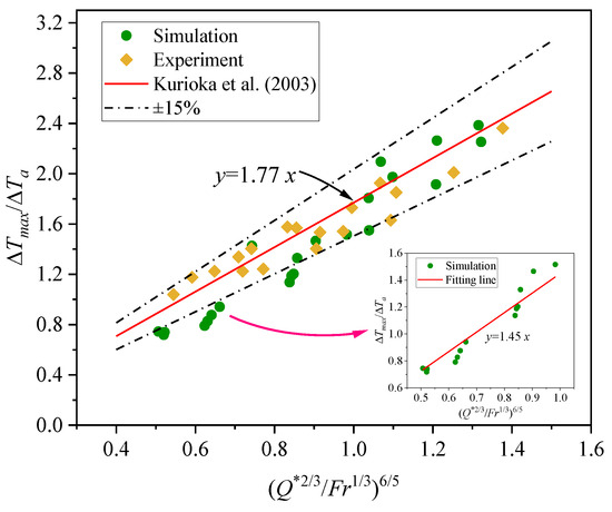 Comparison of experimental and simulation results with Kurioka′s empirical equation [19].