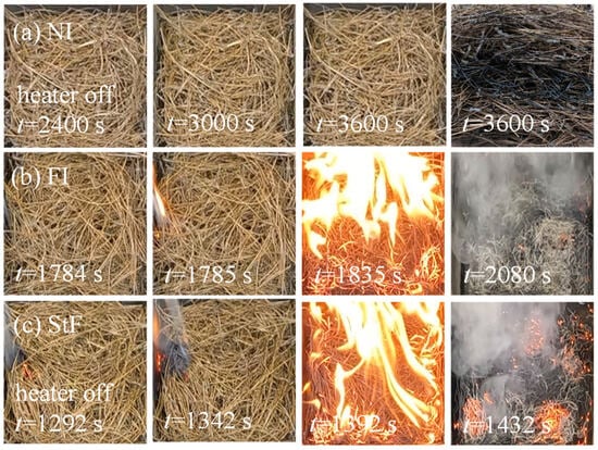 - Qiao, Y.; Zhang, H.; Yang, J.; Chen, H.; Liu, N.; Xu, M.; Zhang, L. Transition from smouldering to flaming combustion of pine needle fuel beds under natural convection. Proc. Combust. Inst. 2024, 40, 105343. [Google Scholar] [CrossRef]