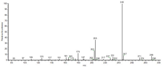 MS/MS spectrum of the ion at m/z 289 present in methanol extract of maçaranduba wood.