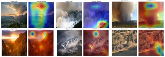 The empirical results of this study demonstrate that the inclusion of multi-task learning, particularly the auxiliary task of confounding element detection, significantly enhanced the model’s overall performance. Metrics such as primary accuracy (93.17%), precision (90.11%), and recall (93.20%) improved compared to baseline models, suggesting that no significant negative transfer was observed with the inclusion of the auxiliary task. By focusing on visually challenging elements like smoke, fog, and reflections, the auxiliary task contributed directly to reducing false positives, as further validated by the Confounding Element Specificity (CES) metric, which reached a notable 92.02%. While these results highlight the effectiveness of multi-task learning in this specific wildfire dataset, it is important to acknowledge that in other datasets or scenarios, task coupling may introduce interference if the auxiliary task is less complementary to the primary task. Future work should focus on testing the model across different datasets to further evaluate the potential for task interference and to generalize these findings. Additionally, the weight ratios between the primary and auxiliary tasks were set to 0.4 and 0.6, respectively, based on validation results that emphasized the auxiliary task’s role in improving accuracy and reducing false positives. However, we recognize that these weight ratios may need to be adjusted in other contexts. Future studies should explore adaptive task-specific weighting strategies to dynamically optimize the balance between tasks, thereby reducing the risk of task interference and enhancing the model’s generalizability across diverse applications.