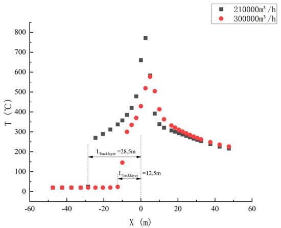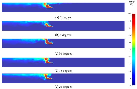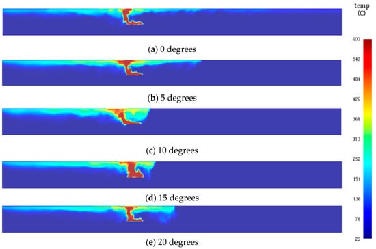 - The longitudinal temperature distribution within the tunnel is nearly symmetrical when a smaller fan airflow volume is used. When the fan airflow volume is 300,000 m3/h, the maximum smoke temperature at a fan inclined angle of 5 degrees is almost half of that at an inclined angle of 20 degrees. Within a certain range of distances between the fan and the fire source, a horizontal angle may be a better choice.