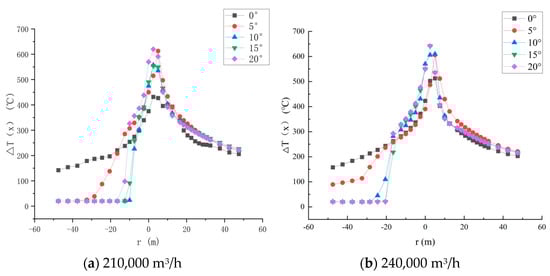 3.2. Effect of Fan Angle on Ceiling Longitudinal Temperature