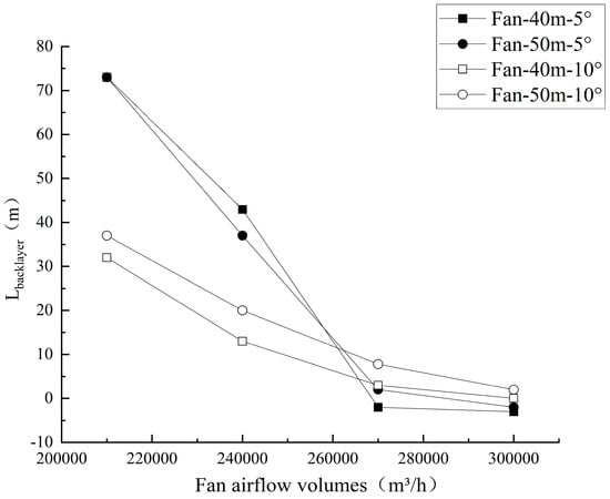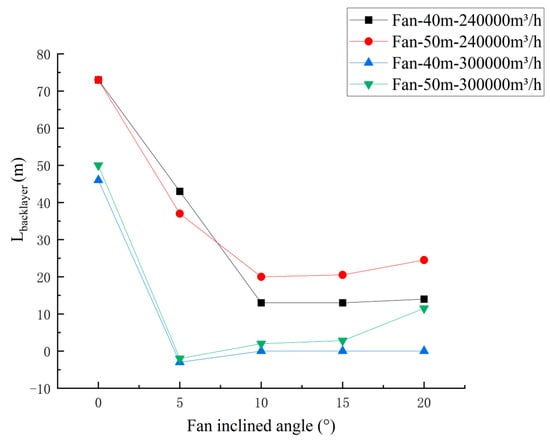 - The inclined angle of the fan significantly impacts the length of smoke back-layering. When increasing the fan airflow volume, appropriately adjusting the inclined angle can enhance the control effect on the smoke.