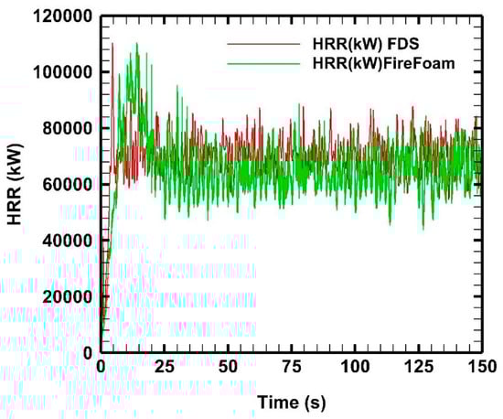 In this section, we discuss the reliability of the FDS and FireFoam codes by highlighting some of their differences. The FDS is less computationally intensive than the FireFoam due to the different algorithms used to solve the discretized equations. This solution is optimized by employing parallel processing capabilities to reduce computation time. Specifically, the solution for the entire computational domain was assigned to nine processors. Both numerical codes are sensitive to the mesh topology in relation to the physics of the fire plume. For the effective solution of the plume optimum, PRI values should be used.