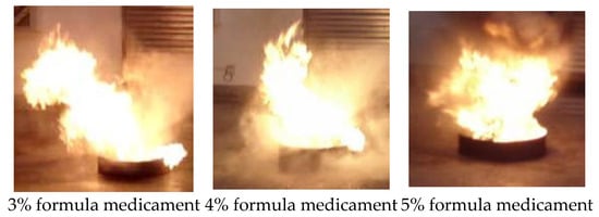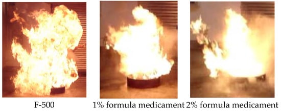 The initial gasoline flame-strengthening effect of F-500 (5% concentration) and formulations with different addition ratios.