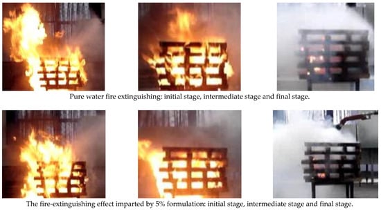 The process of extinguishing the stacking fire of the wooden sticks with pure water and formulation.