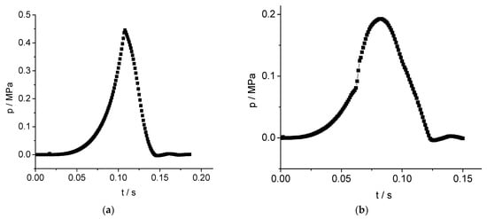 (a) The explosion pressure curve under the action of pure water, and (b) the explosion pressure curve after adding 1% formulation agent.