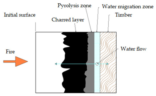 Characteristic layers of wood under fire load.