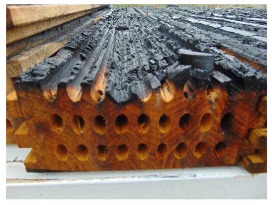 - Frangi, A.; Knobloch, M.; Fontana, M. Fire Design of Timber Slabs Made of Hollow Core Elements. Eng. Struct. 2009, 31, 150–157. [Google Scholar] [CrossRef]