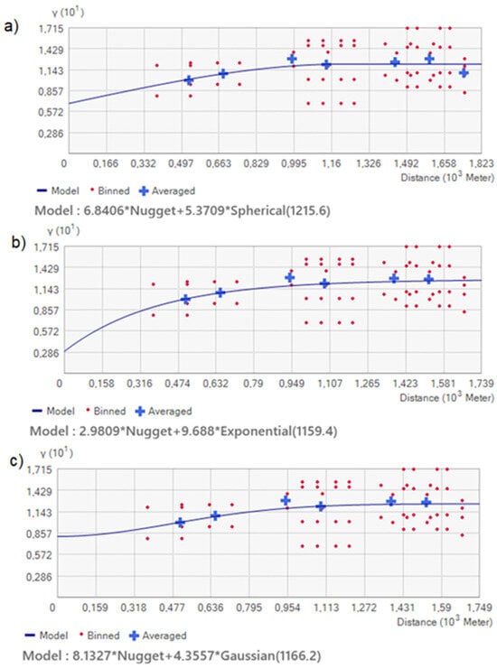 For the ordinary kriging interpolation, three possible semivariogram models (Spherical, Exponential, and Gaussian) were tested (