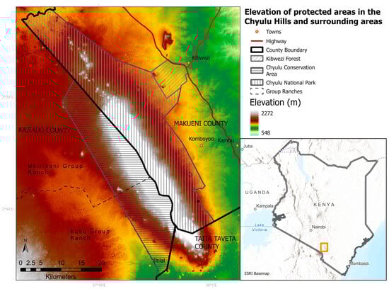 - Kiringe, J.W.; Mwaura, F.; Warinwa, F. Characterization of Chyulu Hills Watershed Ecosystem Services in South-Eastern Kenya. Environ. Nat. Resour. Res. 2016, 6, 65–76. [Google Scholar] [CrossRef]