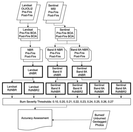 - Cocke, A.E.; Fulé, P.Z.; Crouse, J.E. Comparison of Burn Severity Assessments Using Differenced Normalized Burn Ratio and Ground Data. Int. J. Wildland Fire 2005, 14, 189–198. [Google Scholar] [CrossRef]
