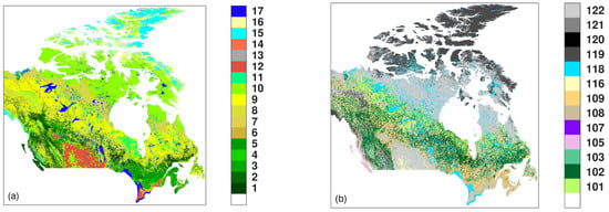 - Baldwin, K.; Allen, L.; Basquill, S.; Chapman, K.; Downing, D.; Flynn, N.; MacKenzie, W.; Major, M.; Meades, W.; Meidinger, D.; et al. Vegetation Zones of Canada: A Biogeoclimatic Perspective; Canadian Forest Service Great Lakes Forestry Centre: Sault Ste. Marie, ON, Canada, 2020. [Google Scholar]