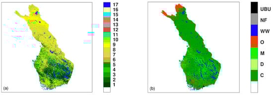 - Majasalmi, T.; Rautiainen, M. Representation of Tree Cover in Global Land Cover Products: Finland as a Case Study Area. Environ. Monit. Assess. 2021, 193, 121. [Google Scholar] [CrossRef]