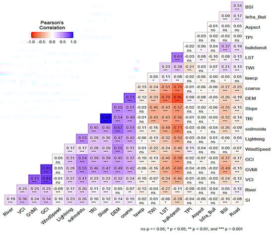 The relationships between the twenty driving factors and the susceptibility index (SI) values from the fire-danger maps were analysed using the multi-environment trial analysis (metan) package in R software Version 4.3.0.