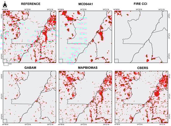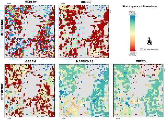 - Humber, M.L.; Boschetti, L.; Giglio, L.; Justice, C.O. Spatial and temporal intercomparison of four global burned area products. Int. J. Digit. Earth 2019, 12, 460–484. [Google Scholar] [CrossRef]