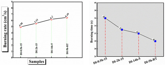 Burning rate and burning time obtained for the coated samples.