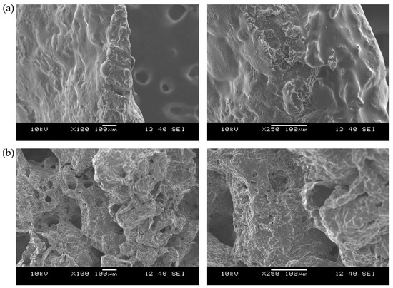 3.3.1. Fracture Surface Analysis by Scanning Electron Microscopy (SEM)