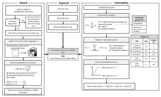 3.3. α-Diversity at Risk due to Wildfires Habitat Degradation