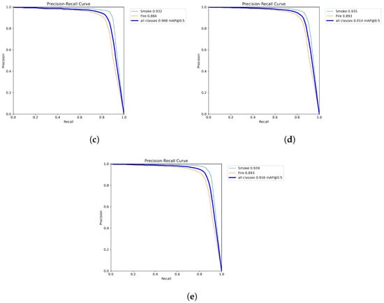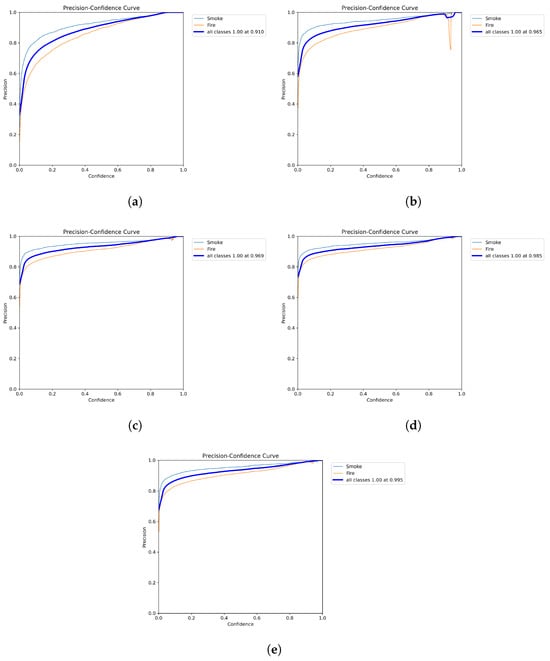 Precision curves of YOLOv8 models: (a) YOLOv8n, (b) YOLOv8s, (c) YOLOv8m, (d) YOLOv8l, (e) YOLOv8x.