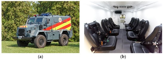 Radiation-shielded emergency vehicle type RDO 3221 RSV KOMONDOR: (a) exterior image and (b) interior image. Source: author’s pictures.