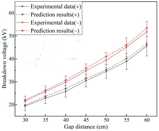 5.3. Prediction Analysis of the Long Gap Breakdown Voltage