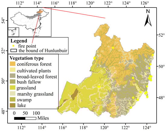 30]. Abundant water resources are present in the region, encompassing over 3000 large and small rivers as well as more than 500 lakes. The total grassland area spans 6.71 million hectares, constituting 12.36% of the entire grassland area within the autonomous region. The vegetation cover of the grasslands in Hulunbuir City, where the grassland is situated, is recorded at 76.15% (2023). The vegetation types within the area range from temperate meadow grassland and temperate typical grassland in the east to low flatland meadows, mountain meadows, and swamps in the west. Hulunbuir Grassland is a renowned tourist destination and a crucial hub for scientific research vulnerable to fire disasters.