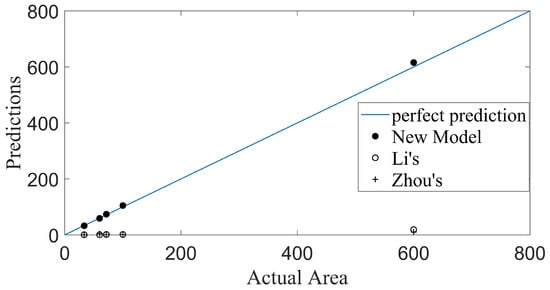 Figure 10). The results demonstrate that our model closely aligns with the actual fire outcomes. In contrast, the values projected by Li’s and Zhou’s models tend to underestimate the actual fire outcomes.
