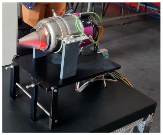 The experimental setup, methodologies, equipment, and testing protocol are detailed in the subsequent section. The experiments were carried out utilizing a Jet CAT P80® turbo-engine [24], illustrated in Figure 1.