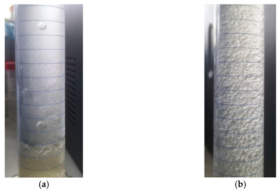 The separation of methanol and kerosene: (a) the separation of the two liquids, (b) the mixture after stirring.