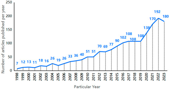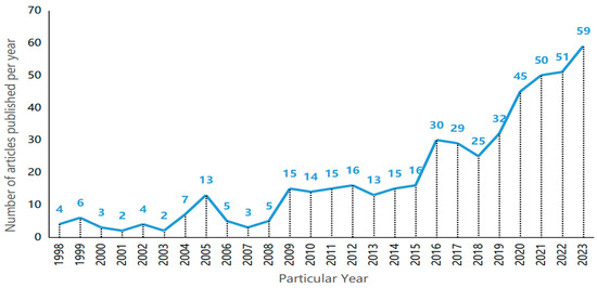 A total of 479 publications from 1998 to 2023 could be identified that dealt with the impact of wildland fire on soil microorganisms, with an upward trend for number of publications per year, in particular since 2018 (Figure 5). Although the research on effects on soil microorganisms caused by wildland fire started relatively late and is currently still in an early stage of maturity, global attention is increasing for wildland fire ecology and the restoration of post-fire ecosystems. It can be expected that the number of annual publications will continue to increase in the future.