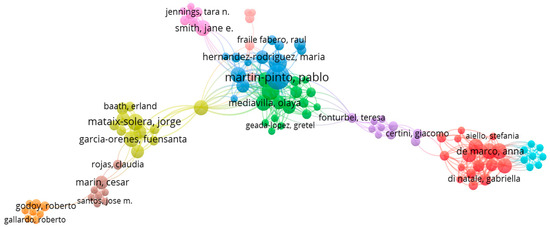Author co-occurrence for publications dealing with wildland fire effects on soil microorganisms.