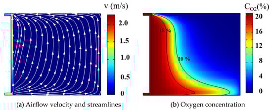 4.2. Spatial Distribution of Oxygen Concentration and Airflow Velocity