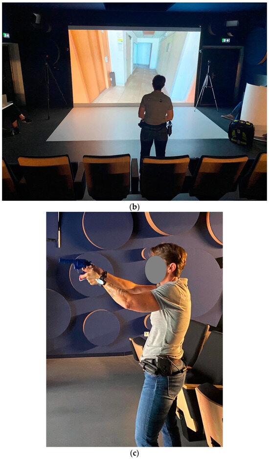 The pilot group should be composed of a sample of students. They should receive information regarding the experimental protocol, which involves evaluating the emotions felt during the viewing of intervention videos. This group is intended to provide an initial assessment of the protocol. Participants of the control group are recruited from civilians in administrative or technical positions, ensuring the exclusion of individuals with volunteer firefighter status. This group, placed under the same conditions as the study group, validates the emotional effects sought by the film without seeking to determine the impacts on decision-making. Participants of the target group should be recruited on a voluntary basis from firefighters and police officers in Corsica. These latter two groups are exposed to a simulation of intervention in an operational context with elements of uncertainty (incomplete information), rapid intervention (limited time for action), risk to the interveners (threat to physical integrity), and an obligation to save or protect lives (Figure 3a–c). The control group should serve as a benchmark to evaluate the intensity of the emotions sought without real expectations regarding coherence in choices (lack of rescue techniques in this sample).