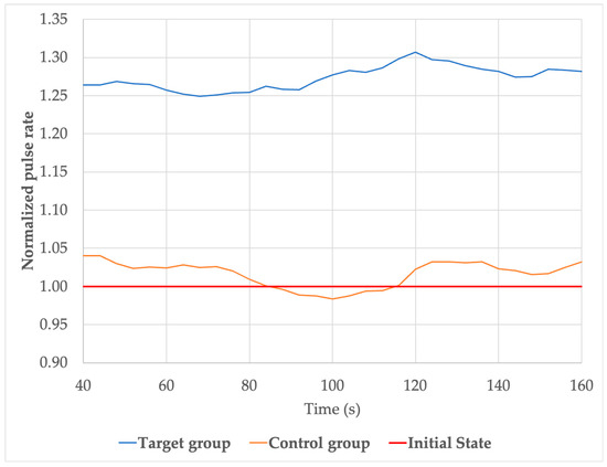 Normalized average pulse rates of both the control and target groups during the film viewing.