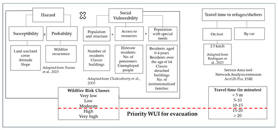 Implementation flow chart components to map priority WUIs for evacuation [45,46,47,48].