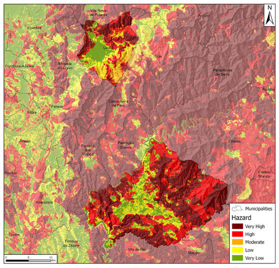 Hazard results for forest fires in the municipalities of Lousã and Sertã.