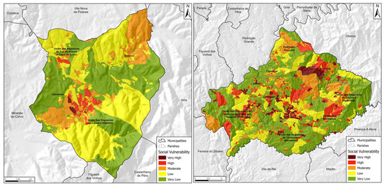 In the case of Sertã, considering the three approaches, the highly vulnerable settlements are scattered throughout the territory. Consequently, it can be seen that the municipality of Sertã has a greater number of areas with high and very high vulnerability than the municipality of Lousã.